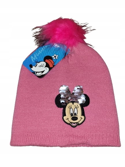 Czapka dziewczęca Myszka Minnie z cekinami i pomponem, obwód 52 cm
