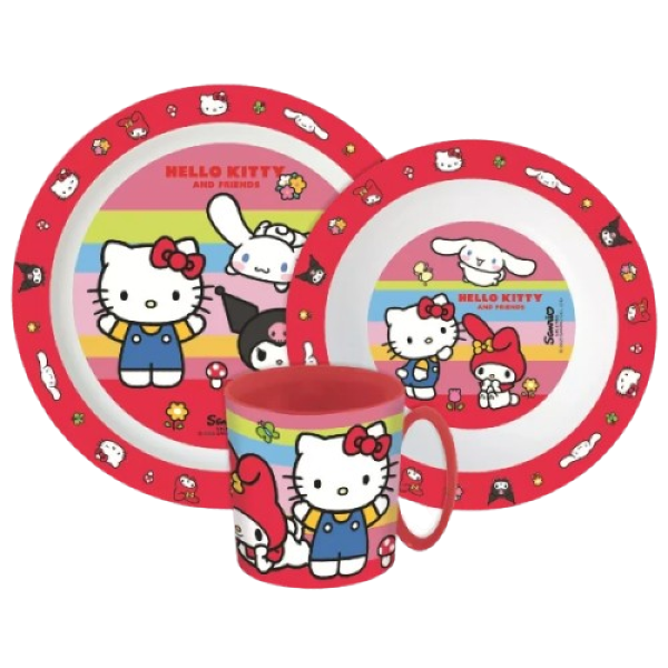 Hello Kitty Zestaw Obiadowy Talerz Miska Kubek BPA 350 Dziecięcy