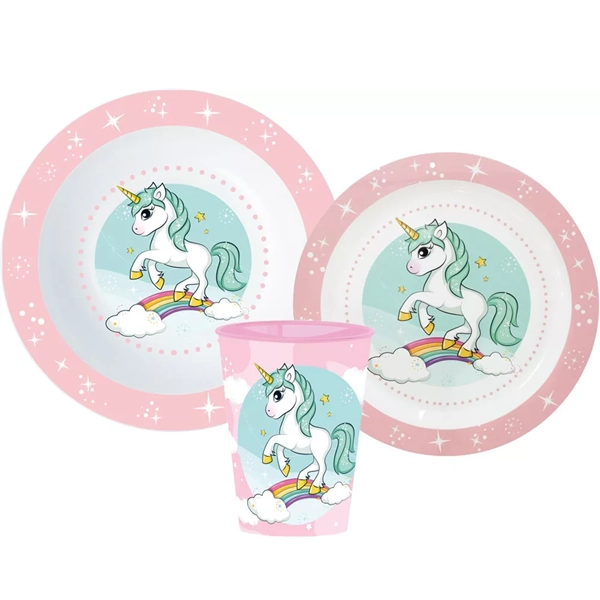 Jednorożec Unicorn zestaw obiadowy dziecięcy – talerz, miska, kubek bez BPA dla dzieci