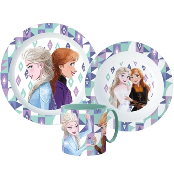 Zestaw obiadowy Frozen to praktyczny komplet naczyń dla dzieci, który ułatwia codzienne posiłki. Motyw bajki Kraina Lodu sprawia, że dziecko chętniej je i korzysta z własnego zestawu.