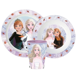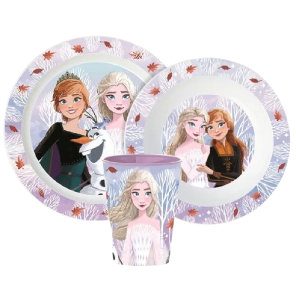 Zestaw obiadowy Frozen to praktyczny komplet naczyń dla dzieci, który ułatwia codzienne posiłki. Motyw bajki „Kraina Lodu” sprawia, że dziecko chętniej je i korzysta z własnego zestawu.