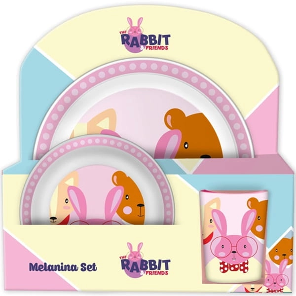 KRÓLIK RABIT & FRIENDS JEDNOROŻEC ZESTAW NACZYŃ STOŁOWYCH MELAMINA