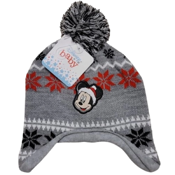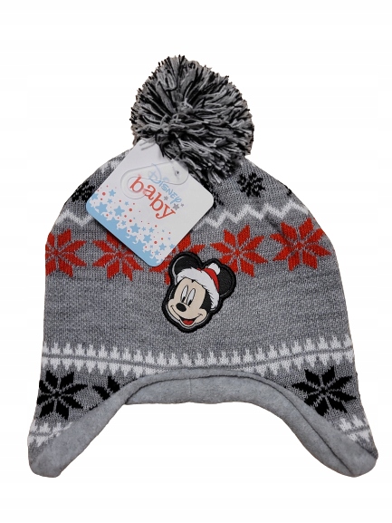 Zimowa czapka z motywem z bajki Myszka Mickey dla niemowląt. Wygodna i ciepła. Rozciągliwy materiał gwarantuje uniwersalność rozmiaru i idealne dopasowanie, a nauszniki zasłoną uszka.