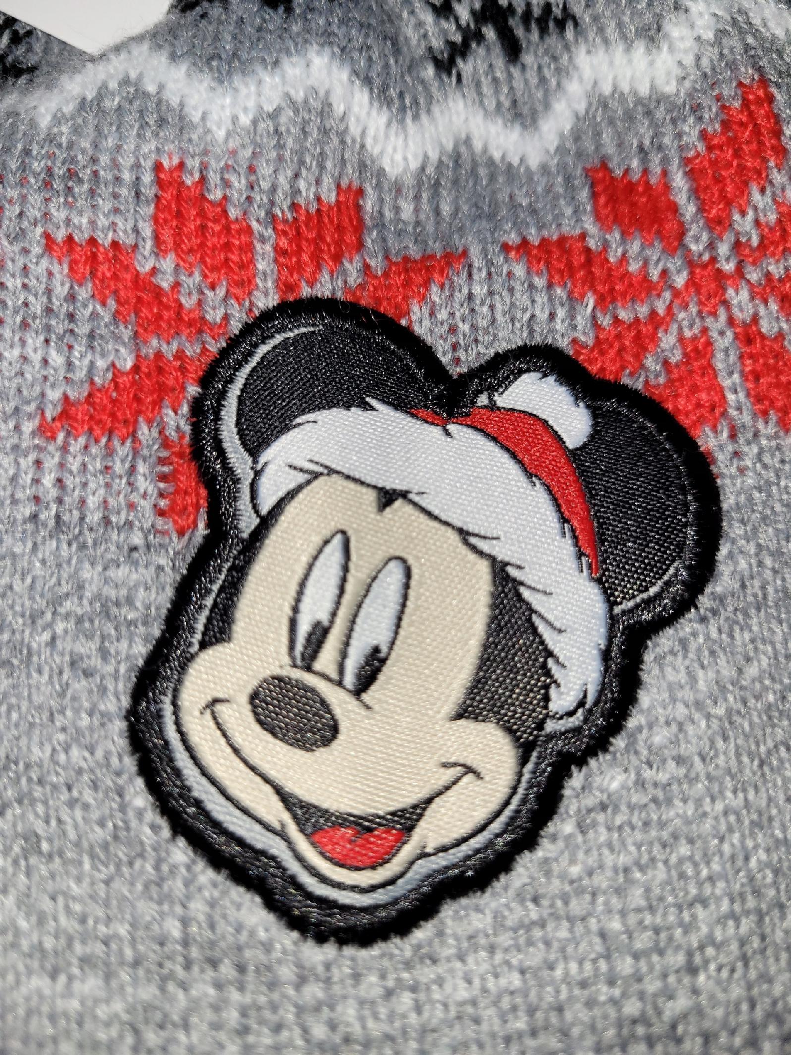 - Zimowa czapka dziecięca z wizerunkiem Myszki Mickey w czapce Mikołaja..
