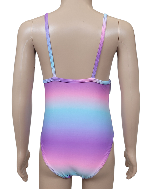 Jednoczęściowy kostium kąpielowy o bardzo ładnym fasonie, w żywej kolorystyce z dużym miękki nadrukiem z postaciami z ulubionych bajek. Fantazyjnie wykończony. Kostium wykonany z dobrych jakościowo materiałów, naddaje się i naciąga dzięki czemu jest komfortowy w noszeniu.