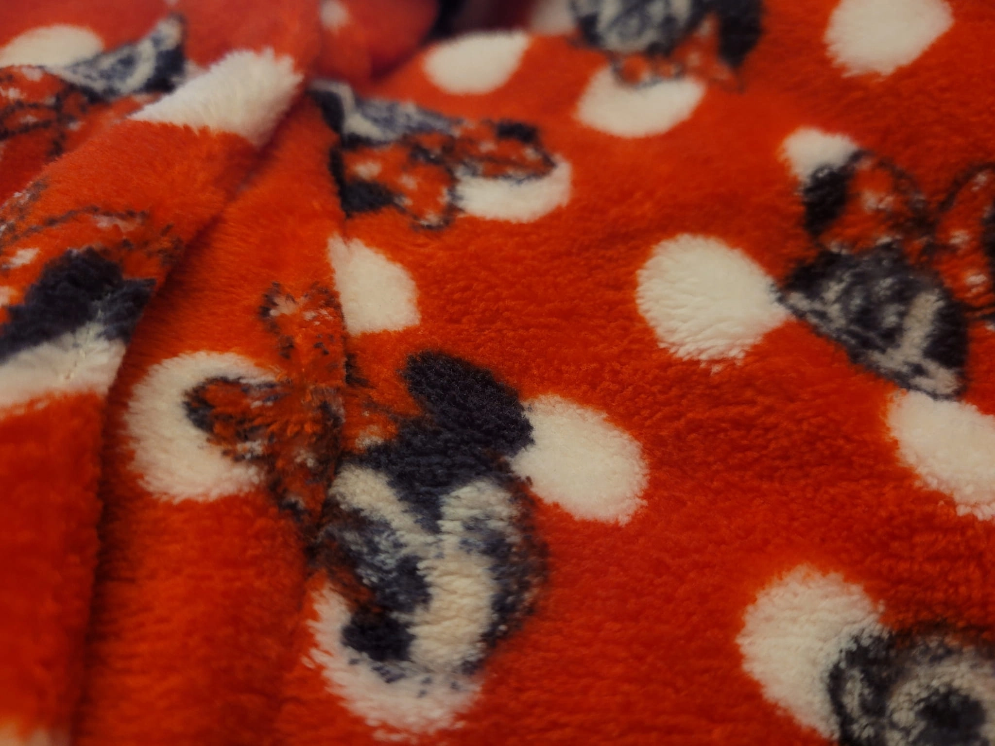 - Coralowa ciepła koszula nocna, zapinana na guziki , w powtarzający się wizerunek Myszki Minnie ,
