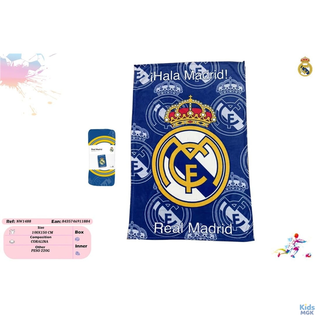 Koc Real Madryt 100x150 cm to połączenie funkcjonalności i sportowego stylu. Miękki, lekki i wygodny – idealny do codziennego użytkowania oraz dla każdego kibica.